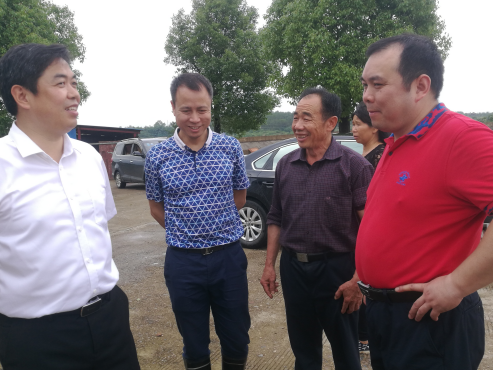 李天明(左一)在陆洲水轮泵水电站实地调研集中式饮用水水源地保护工作